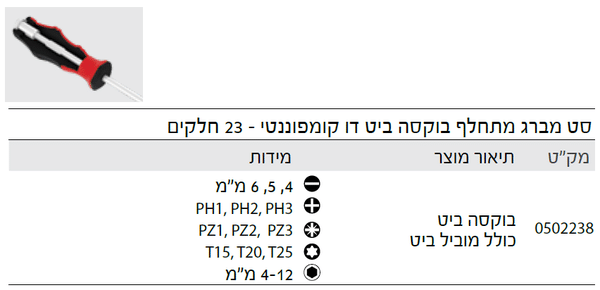 סט מברג מתחלף בוקסה ביט דו קומפוננטי – 23 חלקים